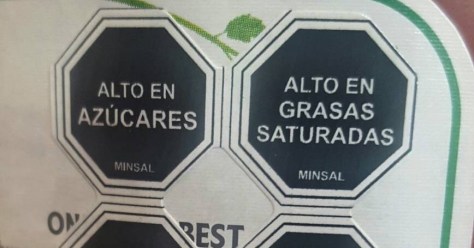 - Blunt, black-and-white communication to cut against colourful packaging. Ex “High in sugar”